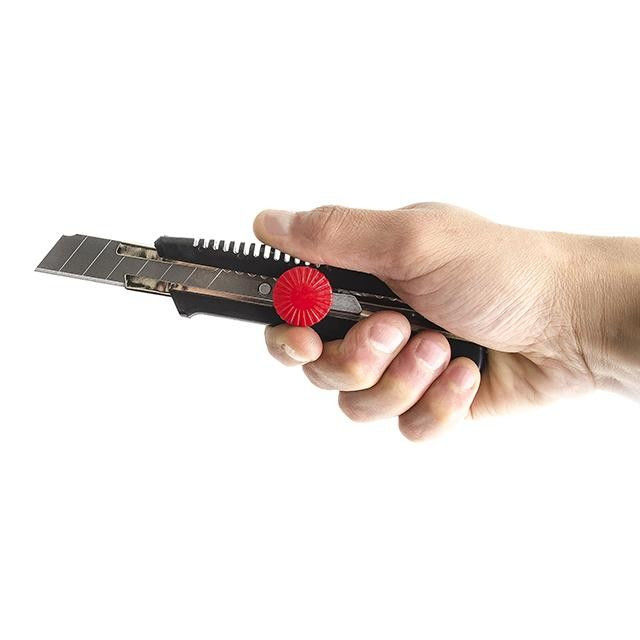 Нож прорезной INTERTOOL HT-0502 с пластмассовым перфорированным корпусом, усиленной стальной направляющей. Выдвижение лезвия осуществляется с помощью пластикового винта-фиксатора. Лезвие ножа – сменное, сегментированное, шириной 18 мм. Нож используется при проведении строительных и отделочных работ для резки бумаги, картона, бандажных лент и прочего материала.